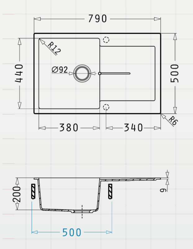 • Drainer with two precut holes