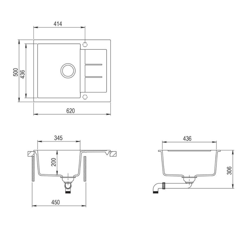 Νεροχύτης γρανίτη 62x50 ένθετος με μια γούρνα της σειράς Tesa της Helika.