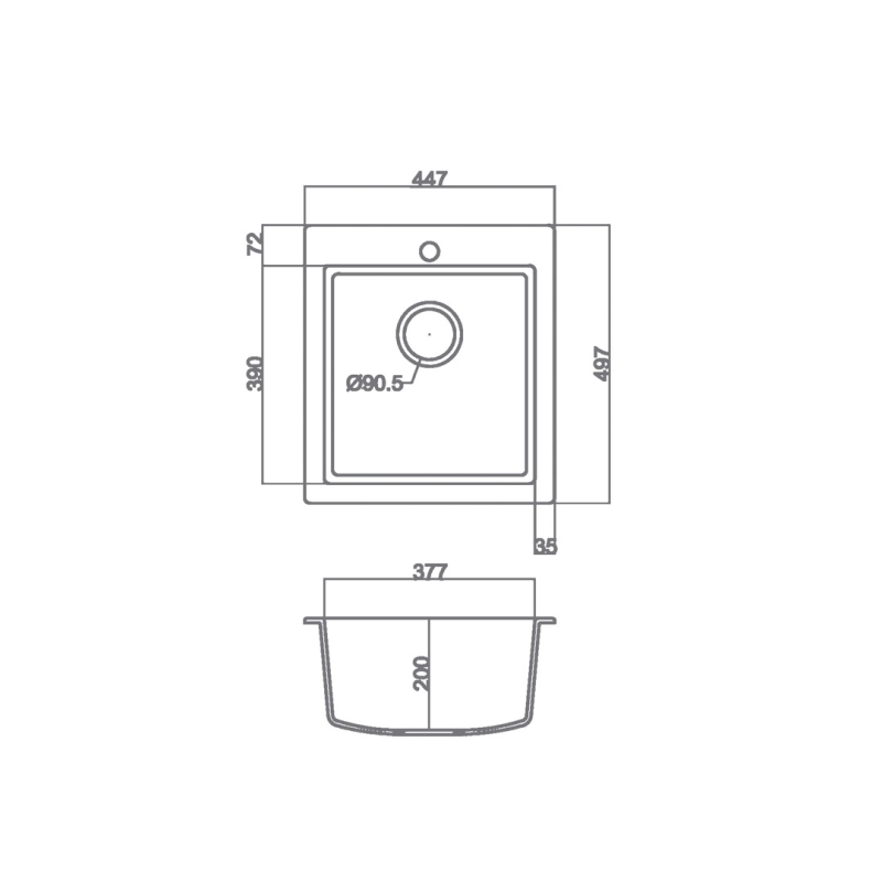 Νεροχύτης γρανίτη ένθετος με μια γούρνα της σειράς Ultra Granite της Sanitec, ελληνικής προέλευσης.
