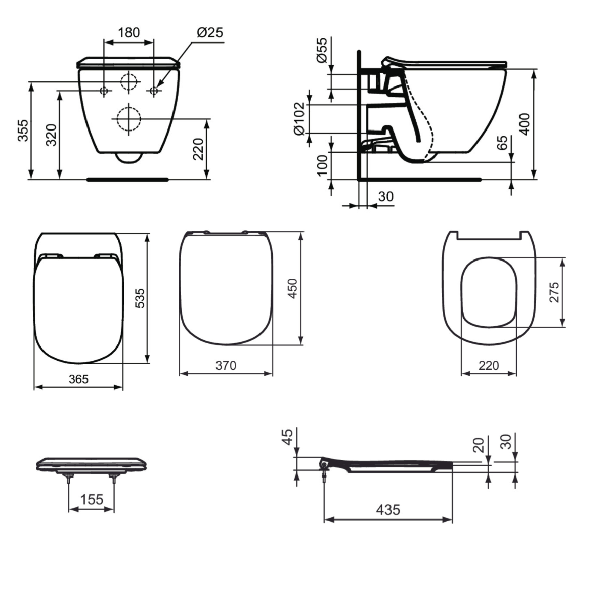 Πλήρες σετ λεκάνης κρεμαστής Tesi II Aquablade HF με καπάκι Sandwich soft close, σε λευκό χρώμα από την Ideal Standard.