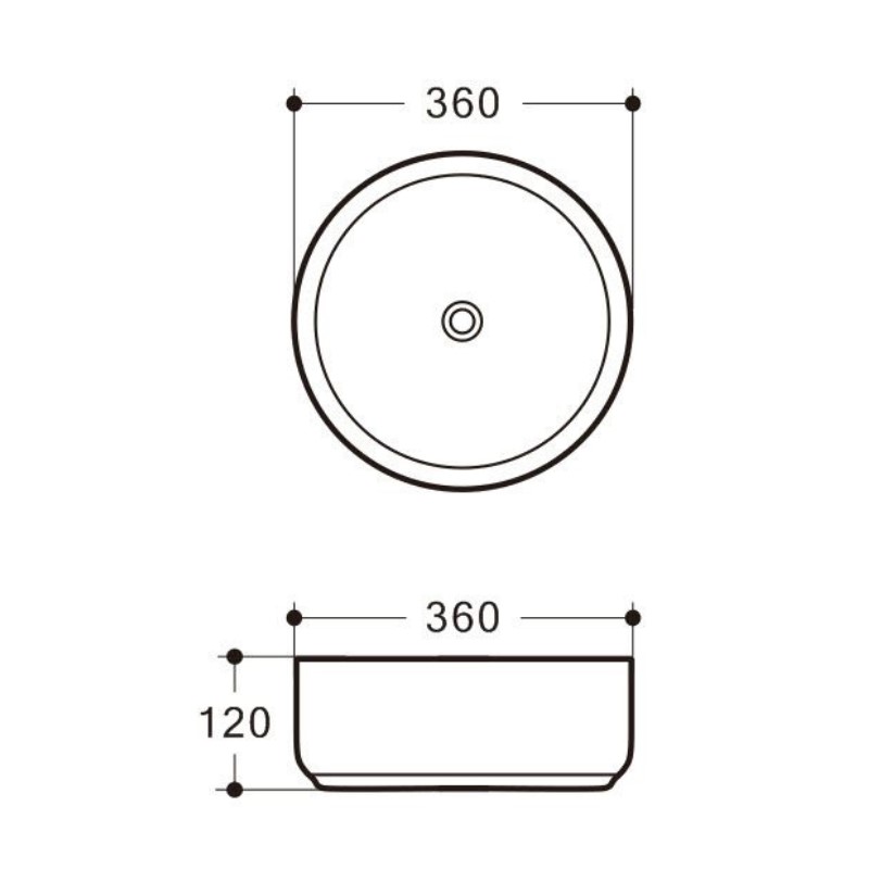 Νιπτήρας πορσελάνης, στρογγυλός διαμέτρου Φ36cm, για ελεύθερη τοποθέτηση της σειράς GA-4016B(YD) , χωρίς υπερχείλιση και χωρίς οπή για μπαταρία, από την Piccadilly.